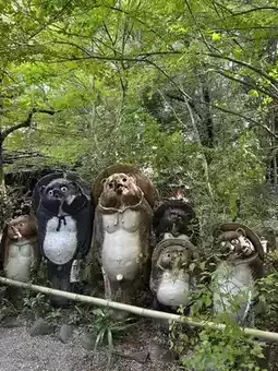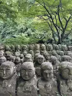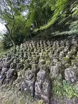 竹林后,不妨前往御田念佛寺(京都府京都市右京区佐贺居本深谷町2-5,电话:616-8439),开启一段更精彩的旅程。寺庙位于岚山中心区域外,步行约30分钟或乘坐出租车即可到达,开放时间为9:00-16:15(周三闭馆)。此行的回报是:数百尊造型奇特的石像,每一尊都独具个性。有些石像面容会让你捧腹大笑,有些则带来一丝宁静——这里是一处隐秘的宝地,既充满灵性又别具一格。