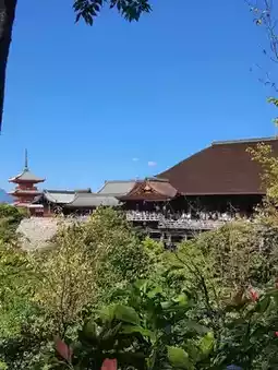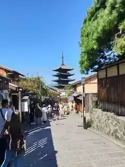 漫步其中,俯瞰京都清水寺的全景。氛围超棒🍃 每个角度都美得可以拍照。 🌤️
