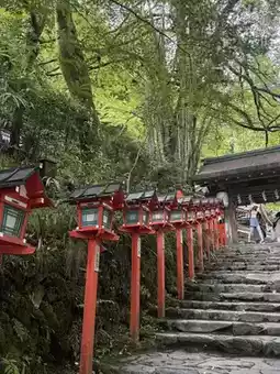 京都最浪漫、最神圣的地方!沿着山路攀登,我们终于抵达了被誉为“绘马诞生地”的贵船神社。踏上标志性的朱红色石阶,仿佛穿越了时空,来到了神灵的国度!这里不仅仅是寻觅爱情的地方,每个季节的景色都美得令人窒息。