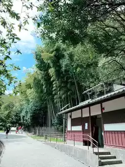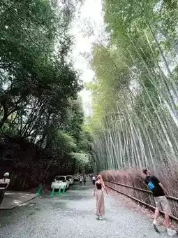 四周绿树环绕,风景如画的小径蜿蜒而行,每一步都令人心旷神怡,是悠闲漫步或静思冥想的理想之所。这片迷人的竹林也是绝佳的拍照打卡点,完美捕捉了其独特景观的优雅与宁静。来此一游,将是一次与自然亲密接触、体验京都永恒之美的难忘之旅。