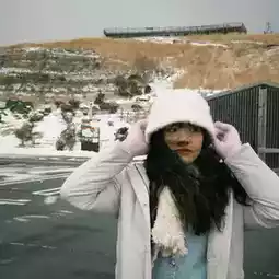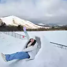 我的第一次雪地探险!虽然只是个雪圈,但别人都在滑行,而我只能笨拙地滚到尽头😂。