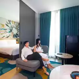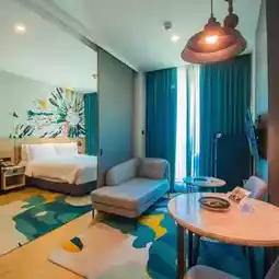 Holiday Inn & Suites Siracha Laemchabang: Enjoy a well-located, fully-equipped accommodation with spacious rooms, well-proportioned living areas, a mini-kitchen, and comfortable beds. Enjoy a stunning swimming pool, onsen, fitness center, and kids' club. Enjoy a relaxing afternoon tea set. Enjoy a delicious dinner at The Hub Bar & Deli, featuring a variety of delicious dishes. You're sure to want to try them all, or order drinks from the bar. The breakfast buffet is also extensive, offering a dazzling array of options.