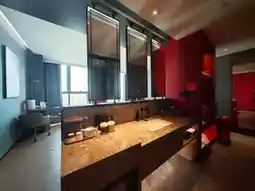 客房分布在36至43层。我们入住的是40层的积木江景双人房。房间设计非常独特,风格简约,干净整洁,床品一如既往地舒适。江景房拥有落地窗,可以欣赏黄河美景。窗户中间部分可以打开(拍照时请注意保护您的设备)。电视支持投屏功能,房间隔音效果也很好。