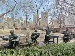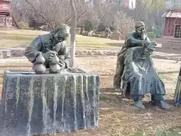 明代水车发明者段旭的雕像矗立在广场中央,生动地再现了他发明水车的场景。📜
