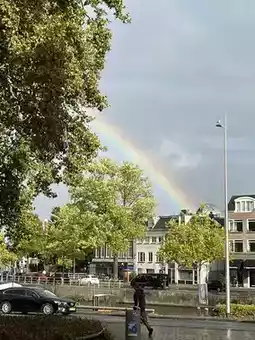 我现在在荷兰北部弗里斯兰州的吕伐登市读书。这里的人们使用自己的语言,叫做弗里斯兰语。他们的州旗很特别,形状像心形,但实际上是睡莲叶。我觉得他们的州旗非常漂亮独特。