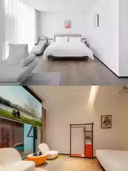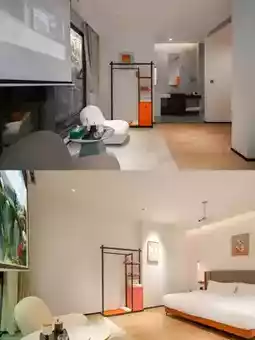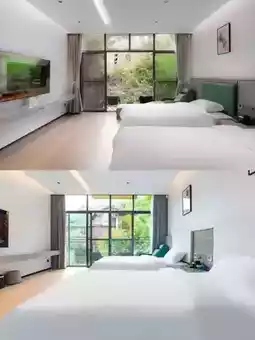 清幽,并设有免费私人停车场。房间宽敞舒适,私人温泉池可同时容纳两人。床铺柔软舒适,还可以用投影仪观看电视剧。大屏幕效果超赞,还配备了小爱同学智能助手。民宿以白色和原木色调装饰,营造出温馨舒适的氛围。店主还提供银耳汤和水果。