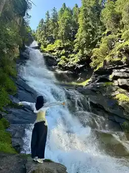 4. 白龙瀑:使用慢速快门拍摄丝滑的水流效果,穿着亮色户外服装增加对比度。