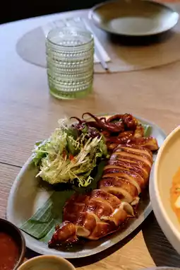 🌟烤大鱿鱼🦑烤得香气扑鼻,肉质鲜嫩!配上辣椒青柠酱,酸辣可口,非常开胃~