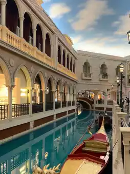 迷人的威尼斯风情🏞:酒店最大的特色在于完美再现了迷人的威尼斯风情。一条长达3.5公里的运河贯穿酒店内部,两岸林立着意大利风格的建筑。您可以乘坐贡多拉游船,悠闲地游览运河,欣赏沿途美景,聆听船夫吟唱的意大利民歌,感受浓郁的异域风情。此外,酒店的天花板设计成蓝天白云的模样,无论白天黑夜,都仿佛置身于阳光明媚的威尼斯。