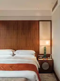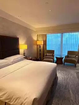 客房:澳门文华东方酒店的客房走的是豪华路线,空间非常宽敞!落地玻璃窗可饱览澳门塔和海景,房间内配备一张舒适的大床和豪华大理石浴室。🛏🛁