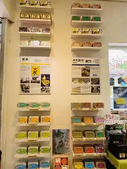出售各种装在可爱盒子里的罐头食品。