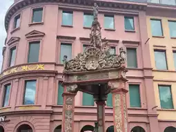 从中央火车站乘坐10分钟的巴士,我便抵达了美因茨迷人的老城区。我的第一站是狂欢节喷泉(Fastnachtsbrunnen),周围环绕着美丽的植物,令人赏心悦目。