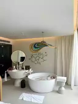 水上别墅面积从120平方米起,沙滩别墅面积从228平方米起。所有别墅均配备私人泳池和露台,让您随时畅游大海,尽享阳光沙滩的浪漫。这里还有许多网红元素,例如水上小屋的蚊帐床、落地窗、海景浴缸等等,应有尽有!😎 🌅泻湖非常宽阔,俯瞰着恩布杜泻湖,是绝佳的拍照地点。在这里,您可以欣赏美丽的景色,享受独特的假期体验。🍴3 家餐厅和 3 间酒吧,提供各种美味佳肴,满足您的味蕾