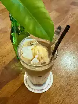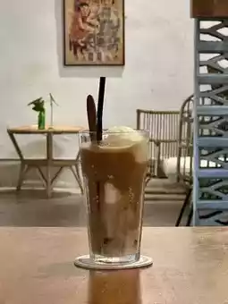 我们品尝了冰咖啡配冰淇淋和冰椰糖——口感浓郁顺滑,绝对是初次体验者的必点之选。他们的菜单融合了现代咖啡馆美食和马六甲当地特色,例如豆沙饼(tau sar piah)等等。