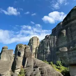 梅黛奥拉令人叹为观止——六座古老的修道院屹立在巍峨的石柱之上。我徒步穿梭于它们之间,沿着凿刻在岩石上的小径攀登,每一个转弯都展现出令人屏息的全新景色。修道院内部同样令人动容——拜占庭式的壁画、摇曳的烛光,以及静谧的虔诚。这里地质奇观与精神世界完美融合,别处难寻。当夕阳西下,落日余晖洒在这些砂岩巨石之后,我终于明白了僧侣们为何会来到这里,寻求与神灵的亲近。