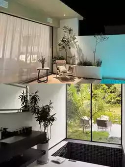 √ 每间房都配有私人温泉 √ 幽静的山间庭院 √ 私人泳池,非常适合家庭入住。✅