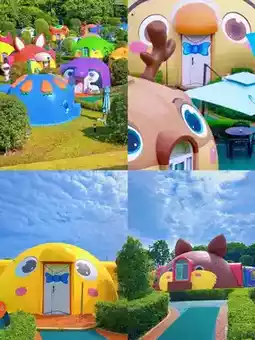 这个童话村庄名为“同梦快乐小屋”民宿,位于四川省绵阳市安州区桑造镇罗浮山温泉旅游度假区内。