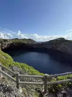列为国家级风景名胜和天然纪念物,其喀斯特地貌被郁郁葱葱的灌木丛和崎岖的海岸线环绕。池塘倒映着葱郁的植被和广阔的天空,构成了一幅如梦似幻的全景图。