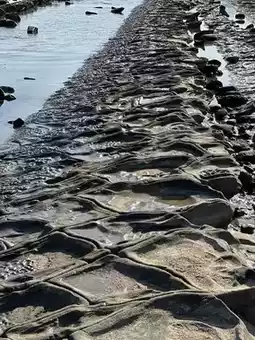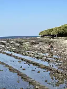 这片被指定为国家天然纪念物的岩石群,从青岛延伸至锦绣岛,绵延约8公里,沿海岸线分布。退潮时,