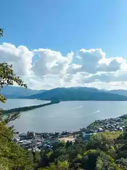 天桥立,常被称为“通往天堂的桥”,是位于京都府北部宫津湾的一条长3.6公里、松树覆盖的沙洲。它被誉为日本“三大名胜”之一,拥有令人叹为观止的景色,完美融合了自然美景和文化底蕴。🏔️