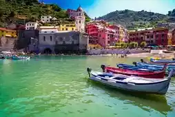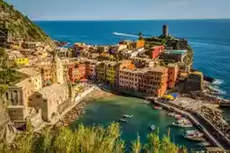 五渔村位于意大利利古里亚大区崎岖的海岸线上,由五个色彩缤纷的村庄组成,依山傍海。它被列入世界文化遗产名录,以其色彩斑斓的房屋、梯田景观和沿海徒步路线而闻名。