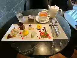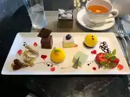 您可以从红茶或咖啡中选择两杯您喜欢的饮品。7种甜点包括6种蛋糕和1种水果(🍓)。奶油口感顺滑,草莓也切得非常漂亮。