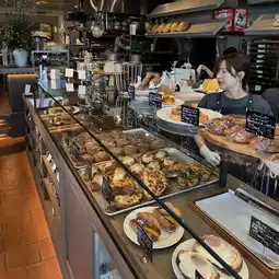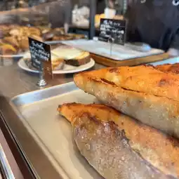 面包店内部装潢温馨雅致,阳光透过窗户洒入室内,营造出舒适的氛围。店员热情友好,更增添了用餐的愉悦感。
