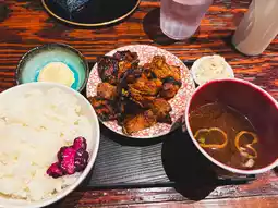 午餐时段,餐厅提供炭火烤制的香气四溢的肉类和鱼类🔥。鲜嫩多汁的肉散发着浓郁的炭火香气,一口下去便令人心满意足。这道菜不仅分量十足,还搭配了蔬菜,营养均衡,难怪男女老少都喜欢。