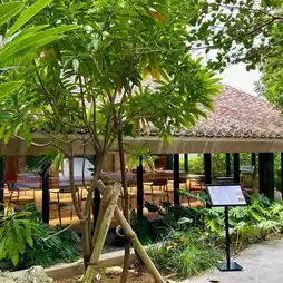 室外泳池也绝对不容错过。四周绿树环绕,每个角度都美得像一幅画。