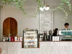 一家河畔花园式咖啡馆。店内是一栋白色木屋,掩映在绿树环绕的花园中。环境清幽静谧,非常适合工作、阅读或放松身心。饮品方面,咖啡和非咖啡饮品均有供应,还有各种烘焙食品可供选择。📍