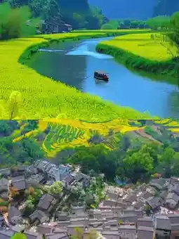 三月的婺源,油菜花盛开。金色的花海与白墙黑瓦的徽派建筑交相辉映,宛如人间仙境!