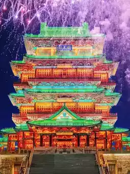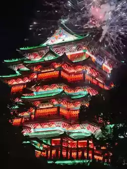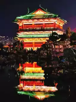 2️⃣滕王阁正门绝对是最佳拍照地点。夜晚灯光秀期间,以滕王阁为背景,景色美不胜收!