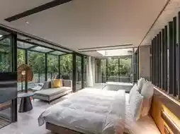 每栋别墅都是独立的私人空间,远离邻屋的干扰,四周环绕着茂密的森林和天然树木,而非钢筋水泥的围墙。落地窗迎接清晨的阳光,阳光透过树叶的缝隙洒入房间,就连呼吸都变得格外深沉。
