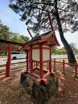 春日大社的整条道路连接着15座神社,其中两座神社经常被人忽略,鲜为人知。在万叶植物园附近,有一座朱红色鸟居的小神社,名为壶神社。神社供奉着壶神,与须佐之男命用酒壶击败八岐大蛇的传说有关。如今,壶神社深受清酒酿造业的尊崇。