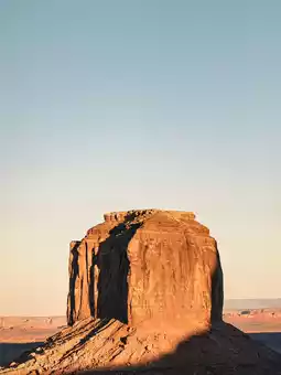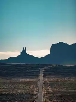 午后,阳光洒在红色的岩柱上,光影交错,橙红色的岩层清晰可见。远处,沙漠绵延至天际,偶尔有马车或越野车缓缓驶过,扬起阵阵尘土。傍晚,夕阳将岩柱染成一片火红,峡谷和平原在暮色中变得柔和起来。纪念碑峡谷宛如一首绵长、雄伟而又孤寂的西部诗篇。
