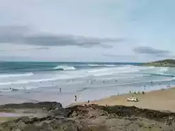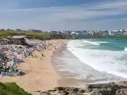 该海滩每年都会举办国际赛事,例如每年八月举行的Boardmasters冲浪节,届时将有冲浪比赛、音乐会和艺术展览等活动。 2025 年冲浪大师赛将重返海滩,预计将吸引数万名观众。