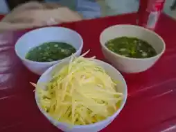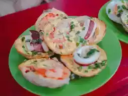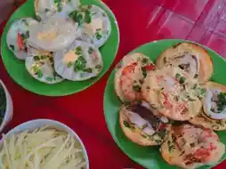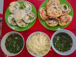 这些迷你煎饼有点像泰式炒蛋(khanom krok),但这里的面糊不甜。你可以选择自己喜欢的配料,比如鸡蛋、猪肉或海鲜。煎饼会配上辣椒、花生和汤,味道非常搭。真的很好吃,尤其是蟹肉馅的。如果你来芽庄,千万别错过这家店——一定要把它列入你的美食清单!