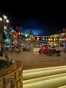 夕阳西下,您可以前往欣赏音乐喷泉表演,这是一场融合了水幕、灯光、音乐和激光的精彩演出。表演通常在晚上 7 点左右开始,持续约 20 分钟。
