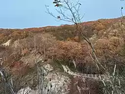 我们沿着大汤沼自然步道从地狱谷走到大汤沼展望台。步道弥漫着硫磺的香气,潺潺的温泉水潺流淌,仿佛一次探险,乐趣无穷。从展望台俯瞰沼泽和绯红森林,景色令人叹为观止。全程