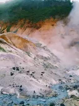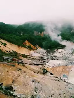 登别地狱谷是支笏洞爷国立公园内一座活火山的壮观火山口。这里呈现出令人震撼的景象:连绵不断的硫磺喷气孔、嶙峋的岩石和汩汩冒泡的温泉,营造出一种近乎炼狱般的氛围。这条山谷是登别温泉的主要水源,每天都为镇上的浴池提供丰富的富含矿物质的泉水。沿着维护良好的步道探索这片原始的自然力量和独特的地质景观,是北海道之旅的必游之地。
