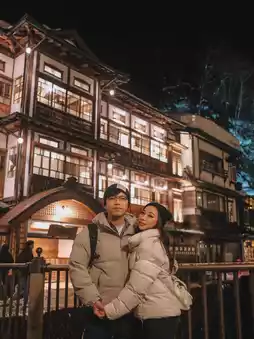银山温泉位于日本山形县,以其大正时期的复古温泉街和四季皆宜的美丽景色而闻名。我们推荐您在此过夜,体验传统的木屋旅馆和露天温泉。冬季,当白雪皑皑的夜晚来临,这里更是如梦似幻。