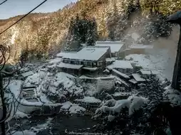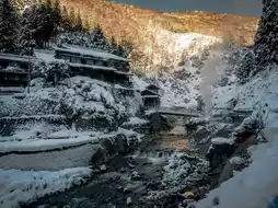 冬季,白雪皑皑的屋顶和热气腾腾的温泉构成了日本最具标志性的冬日景象之一。