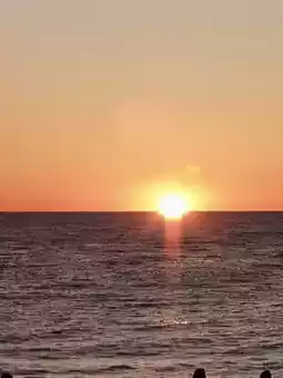 夕阳西下,我留在海边,欣赏着天空被染成金色。这里的海上日落格外迷人——平静、开阔,静谧而美丽。