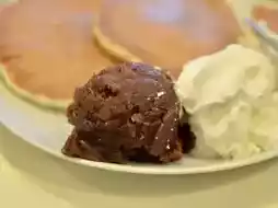 我点了“日式煎饼”(Japancake),上面铺着甜甜的红豆沙,还有经典的夏威夷果酱煎饼。两款都非常棒!煎饼轻盈蓬松,奶香浓郁,配料的甜度也恰到好处。夏威夷果酱尤其浓郁顺滑——难怪它如此受欢迎!