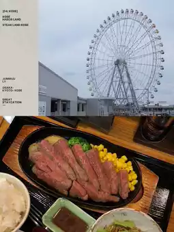 中午至下午:在三宫站附近的人气餐厅神户牛排馆 (Kobe Steakland) 用餐。餐厅交通便利,但经常需要排队(建议中午前到达以避开排队)。您可以选择高品质的神户牛肉,观看厨师在您面前以铁板烧的方式烹制牛肉。体验正宗的神户牛肉,然后继续在三宫中心街购物。