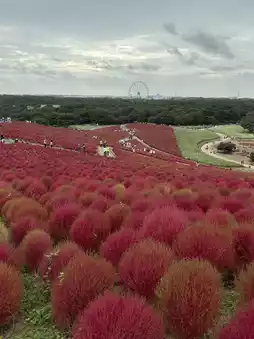 在春夏两季景色迷人。四月和五月,整个公园都被蓝色的粉蝶花覆盖,仿佛置身于宫崎骏动画的世界;每一张照片都美得像明信片。夏末初秋,扫帚草将山坡染成一片红色;到了冬天,公园里灯火璀璨。公园内设有餐厅和休息区,可以轻松消磨半天时光。-