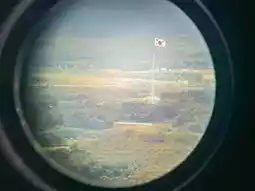 - 用广角镜头拍摄戒备森严的边境线和广袤的非军事区。