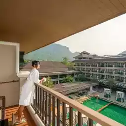 我们两人选择了行政豪华山景房。房间非常宽敞,配备一张大床,柔软舒适,睡起来很舒服。还有一个大阳台。当然,景色也很棒,可以欣赏到郁郁葱葱的群山。尤其是在清晨或傍晚,您可以到阳台上放松身心,欣赏日出日落,真是太美了!