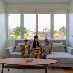 。别墅内设有两间卧室、三间浴室、一个起居室