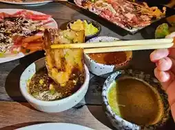 点了烤猪肉,蘸酱种类繁多,吃起来非常美味。如果你想找个晚上氛围好的地方吃烤猪肉,那就来这里吧。 🥓🥓